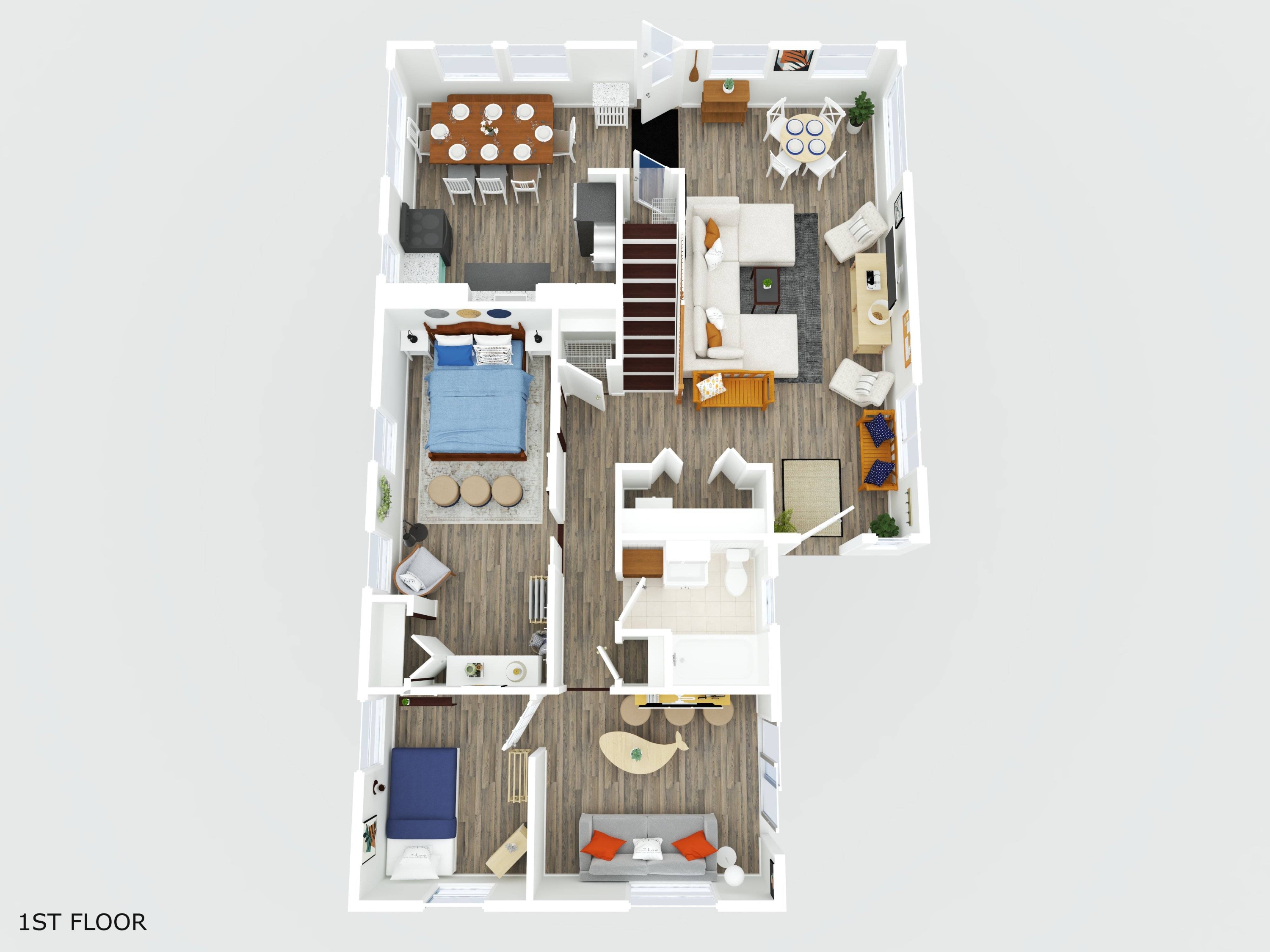 +This is an 1800 sq.ft that comfortably sleeps 8-10 total guests