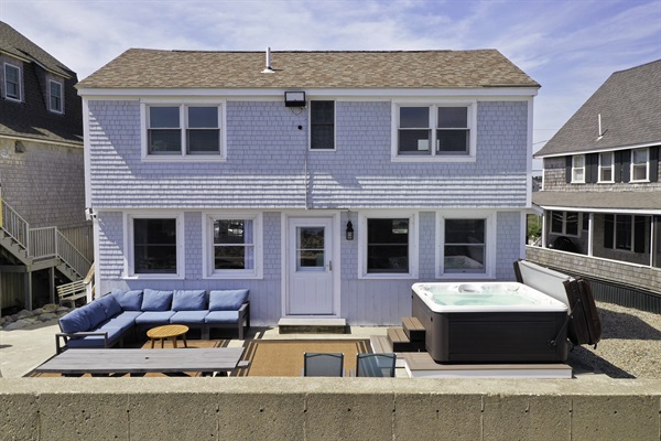 Experience nature's beauty from our cozy outdoor sitting area as you soak in the hot tub amidst the sights and sounds of the beach.