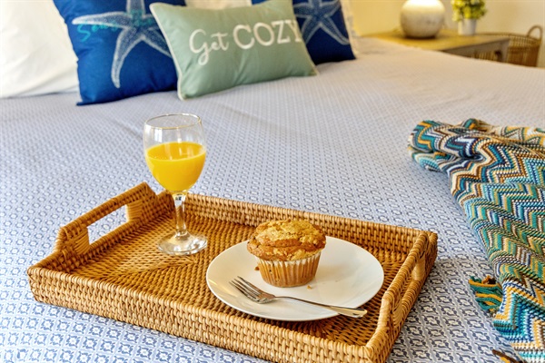 Enjoy the soothing sound of waves as you relax in our second-floor bedroom with ocean views!